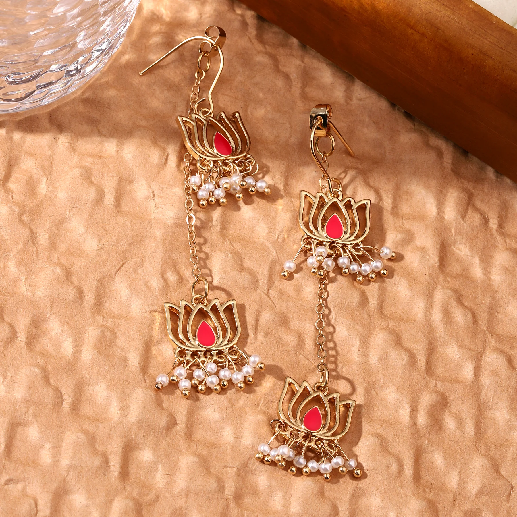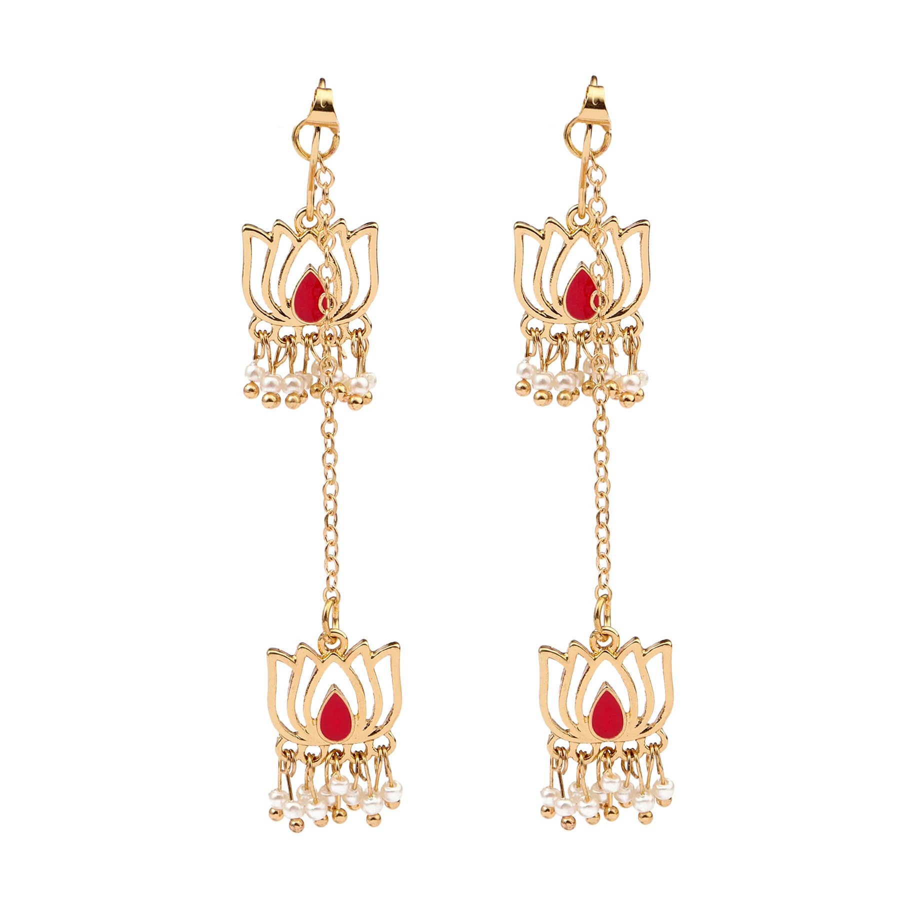 Embrace tranquility and timeless beauty with the Serene Pearl Lotus Drops Earrings. Perfectly suited for both formal occasions and everyday elegance, the Serene Pearl Lotus Drops Earrings offer a touch of sophistication and a whisper of nature’s elegance. Let these exquisite earrings be a reminder of serenity and grace, adding a radiant glow to your ensemble.